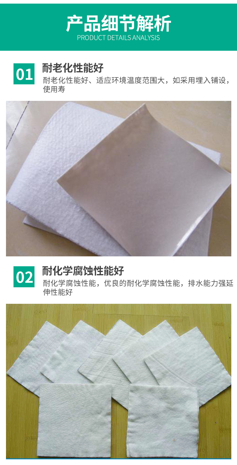 產(chǎn)品介紹: 防滲復(fù)合土工膜:復(fù)合土工膜是用土工織物與土工膜復(fù)合而成的不透水材料,它主要用于防滲,復(fù)合土工膜分為一布一膜和兩布一膜,抗拉、抗撕裂、頂破等物理力學(xué)性能指