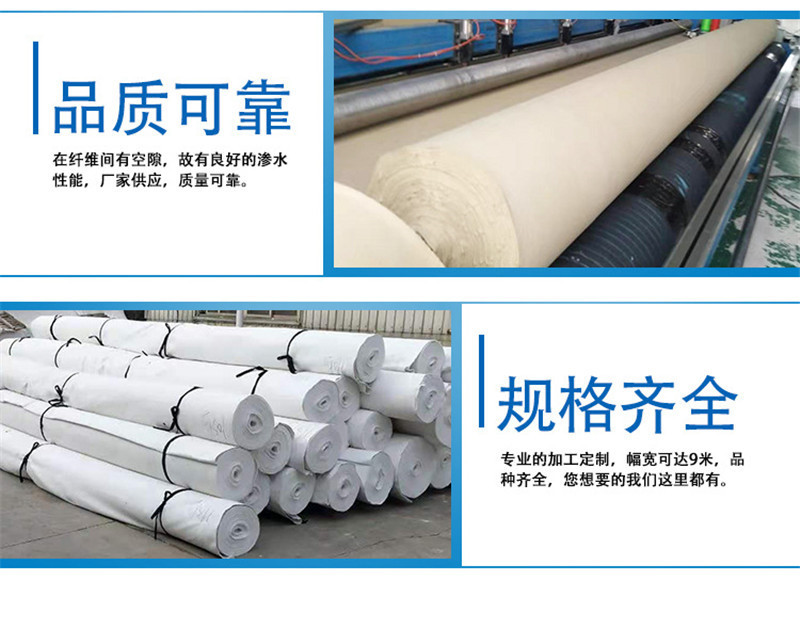 產(chǎn)品介紹: 我們常說(shuō)的土工布即短絲土工布或短纖土工布,它是由合成纖維通過(guò)針刺或編織而成的透水性土工合成材料。成品為布狀。短絲土工布具有良好的力學(xué)功能,透水性好,并能